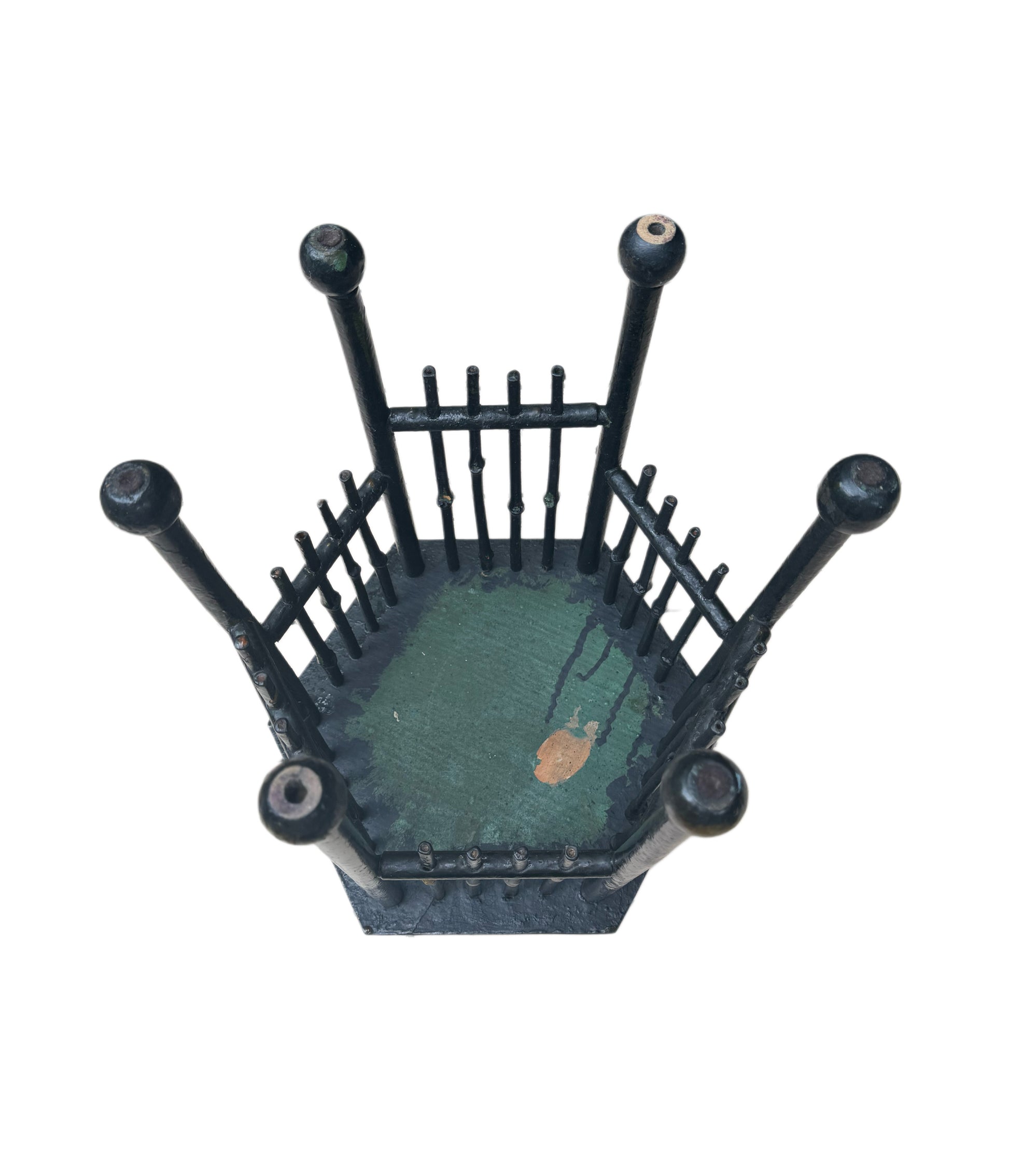 This antique bamboo black lacquered table, adorned with hand-painted gold accents, offers a sophisticated chinoiserie style. Its compact design makes it perfect for highlighting vignettes or adding an elegant focal point to any space.Lightweight and easy to move, this stand enhances your décor while providing versatile display options throughout your home.