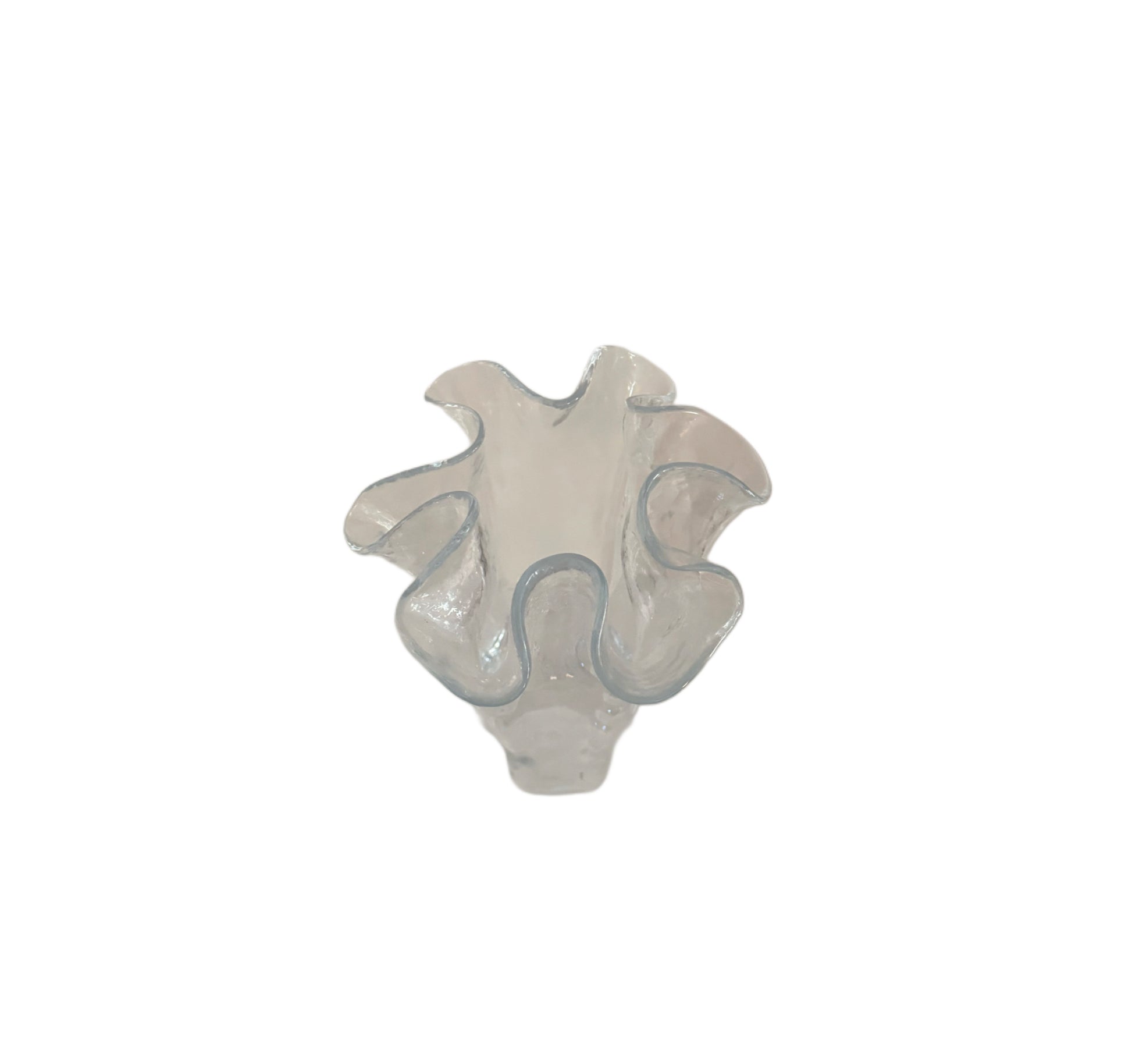 The vintage Ruffled Glass Vase by Muurla in Finland, showcases exquisite craftsmanship with its delicate ruffled edges and clear glass design. This elegant piece adds a refined touch to any interior, perfect for displaying fresh flowers or as a standalone decorative accent. Its timeless style and quality make it a sophisticated choice for collectors and design enthusiasts alike.
