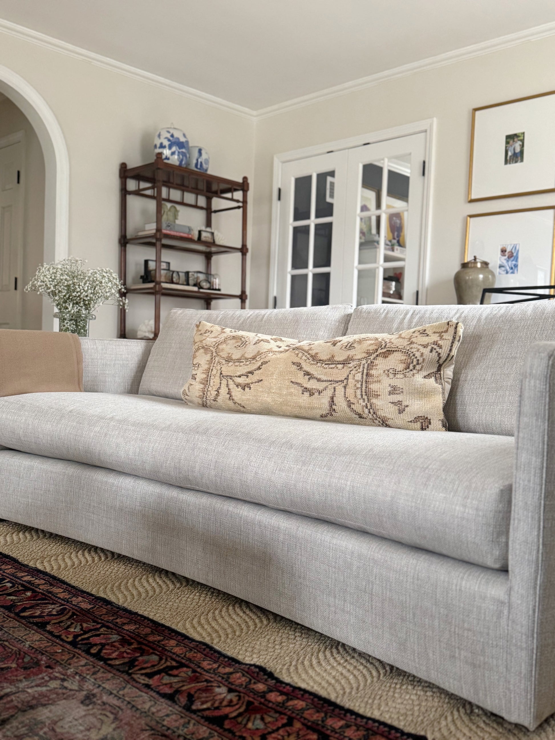 Vintage Turkish Kilim Lumbar Pillow, Cream